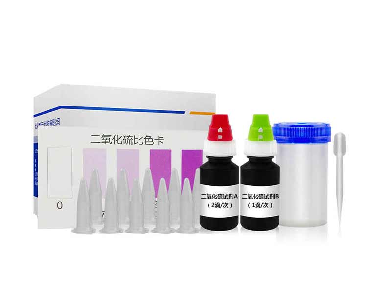 二氧化硫或亞硫酸鹽與檢測試劑反應生成紫紅色化合物,含量越高,紫紅色越深。