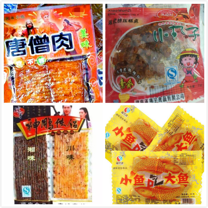 那時候的辣條也知道借熱點營銷,所以命名也總是緊跟潮流,什么“唐僧肉、小丸子、神雕俠侶”就統統跑出來了!就連小魚吃大魚的電影也被拿來命名了呢!