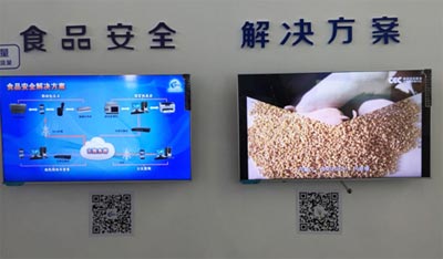 參展期間,在新疆電信食品安全解決方案展示區(qū),展位視頻循環(huán)播放北京智云達(dá)食品安全解決方案的詳細(xì)介紹,流程及適用對(duì)象、監(jiān)控系統(tǒng)。在電腦屏幕前,前來(lái)詢問(wèn)解決方案系統(tǒng)的人絡(luò)繹不絕,更有感興趣的外國(guó)友人跨越語(yǔ)言障礙,耐心聽我們的技術(shù)人員一一做詳細(xì)解答。同時(shí)在參展區(qū)展示北京智云達(dá)自主研發(fā)生產(chǎn)的快速檢測(cè)儀、快速檢測(cè)試劑盒,來(lái)自伊朗的國(guó)際友人對(duì)儀器頗有好感,進(jìn)行詳細(xì)咨詢。電視下方設(shè)置關(guān)注官方微信二維碼,方便興趣人員關(guān)注留言。