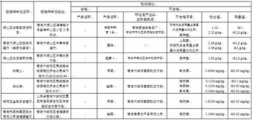 本次抽檢的品種涉及酒類、茶葉、醬腌菜、蔬菜、雞蛋等品種,其中抽檢不合格產(chǎn)品主要涉及韭菜、芹菜、雞蛋、牛肉等食品。記者在食藥局公布的不合格產(chǎn)品名單中注意到,本次上抽檢黑名單的不乏知名超市,其中,其中,青島利客來集團(tuán)股份有限公司惜福鎮(zhèn)超市的韭菜毒死蜱的檢出值為1.1640 mg,超標(biāo)55倍;青島利客來集團(tuán)股份有限公司上馬超市的鮮雞蛋檢出了恩諾沙星以及環(huán)丙沙星;青島合和世紀(jì)家家福連鎖超市有限公司的牛肉檢出了克倫特羅;青島十八家家悅超市有限公司晶岳廣場店的烤魚片檢出了亞硫酸鹽(以二氧化硫計)等。