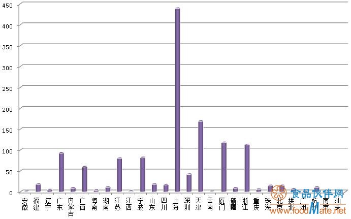 統計顯示,這些食品來自六十多個國家或地區。其中,意大利、美國、日本這些國家以及臺灣地區的不合格食品居多,尤以臺灣地區的最多。