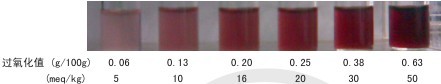 利用食用油氧化所生成的過氧化物與檢測試劑發(fā)生顯色反應(yīng),食用油過氧化值越高,顏色越深。