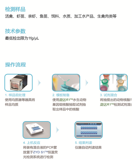 旋達(dá)R1?動物病害檢測系列試劑,基于恒溫擴(kuò)增技術(shù)平臺,以特別設(shè)計的2對特異性識別檢測靶標(biāo)的獨有基因序列,能快速、準(zhǔn)確地鑒定檢測出樣品中是否含有特定病原體,可對動物病害進(jìn)行有效監(jiān)控,有力地防止疫病的爆發(fā),并且可應(yīng)用于出入境對外來有害生物疫情疫病監(jiān)測。