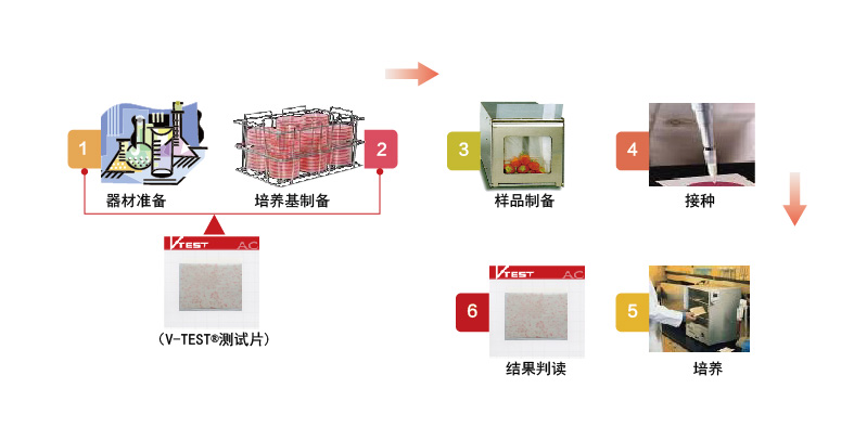 V-TEST指標(biāo)菌快速檢測(cè)試紙片為預(yù)制型培養(yǎng)基系統(tǒng),它含有標(biāo)準(zhǔn)方法的培養(yǎng)基,冷凝膠和指示劑,適用于食品、飲用水及原料中的指標(biāo)菌的測(cè)定,也可以用于食品加工環(huán)境中的指標(biāo)菌的測(cè)定。