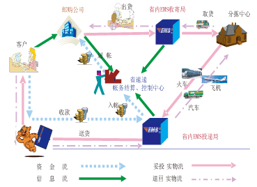 收寄局:封發(fā)郵件并通過郵政物流遞送郵件,同時收寄局封發(fā)郵件清單發(fā)往省速遞結(jié)算中心;